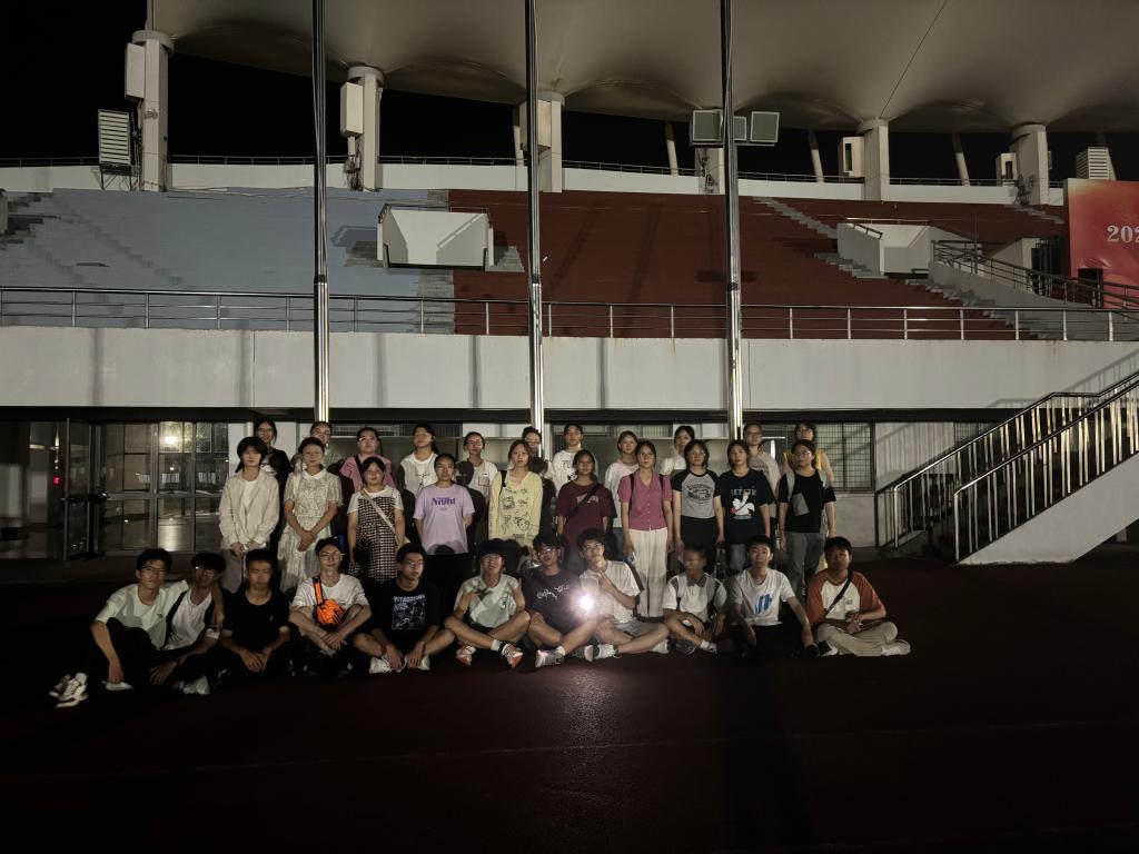 药学2401班副班程堉与制药2401班副班王申毅同两个班级的新同学们从2138CC太阳集团出发,一路向北,与同学们一同领略小蠡湖的晚霞,经过工程实训中心以及西北操场抵达第一个休息点北区商业街,在繁华的商业街稍作休息之后,一行人再次出发前往此次夜游江大的最终目的地体育中心。在体育中心,两个班级分别手拉手围坐一圈开启大学的第一次破冰,首先大家进行简短的自我介绍,随后药学2401班与制药2401班围成了一个更大的圆圈一同欣赏小萌新们的破冰表演。本次活动也以大家的第一张合影作结,通过简单的接触,相信大家对于未来的大学生活有了更多的憧憬与畅想。