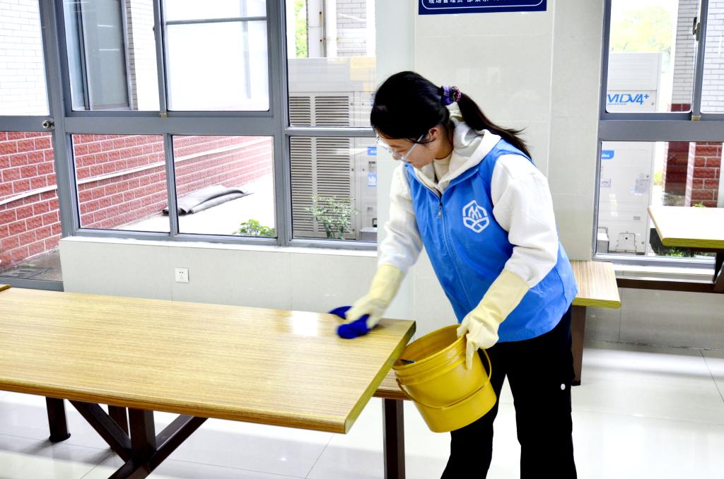 志愿者进行桌面清洁