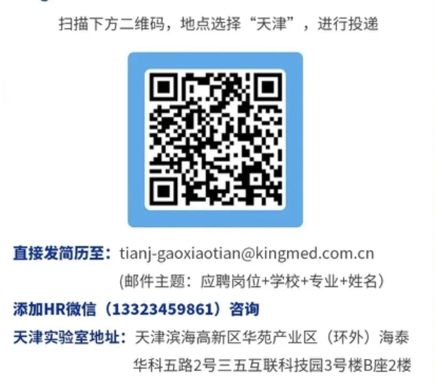 直接发简历至:tianj-gaoxiaotian@kingmed.com.cn