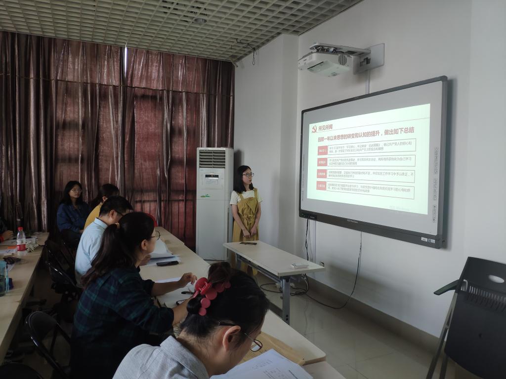 在转正大会上,叶芸慧、吴琳洁2名预备党员依次进行了转正答辩。答辩分为个人展示、评委提问和党员应知应会基本问题回答三个环节。在个人展示中,预备党员就自身的思想认识、学习成绩、学生工作、社会实践、志愿工作等方面采用PPT形式向党组织汇报了预备期一年的综合情况,同时对自身不足之处进行了反思总结。在评委提问环节,评委老师们围绕党的相关知识、预备期的实际表现进行提问。预备党员们实事求是,积极作答。答辩会的最后,主持人向大家宣读了答辩情况报告。经答辩小组无记名投票评审,叶芸慧和吴琳洁答辩成绩获评优秀,答辩小组成员一致同意通过答辩。