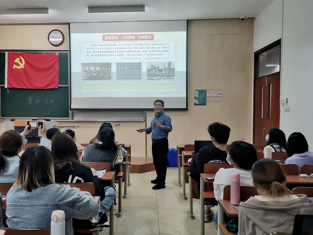 紧接着校关工委副主任、电子信息专业教授燕庆明老师为本次培训做《坚定信念、追梦前行》的首场讲座。讲座内容围绕建党伟业、百年发展征程以及燕教授在学习党史中的一些体会展开。燕教授还与大家分享了他写的诗——《红船起航》、《水调歌头•学党史》、《水调歌头•回首感悟》等,或讲述了中国共产党建党初期的艰难历程,或浓缩了中国共产党全心全意为人民谋幸福所取得的成就,或展示了他本人学习、工作的峥嵘岁月。讲座的最后,燕教授引用习近平总书记对青年人的寄语呼吁同学们:“一要爱国,忠于祖国、忠于人民。二要励志,立志鸿鹄、做奋斗者。三要求真,求真学问、练真本领。四要立行,知行合一、以行求知。”燕教授深入浅出,真诚恳切的讲座使同学们受益匪浅,掌声雷动。