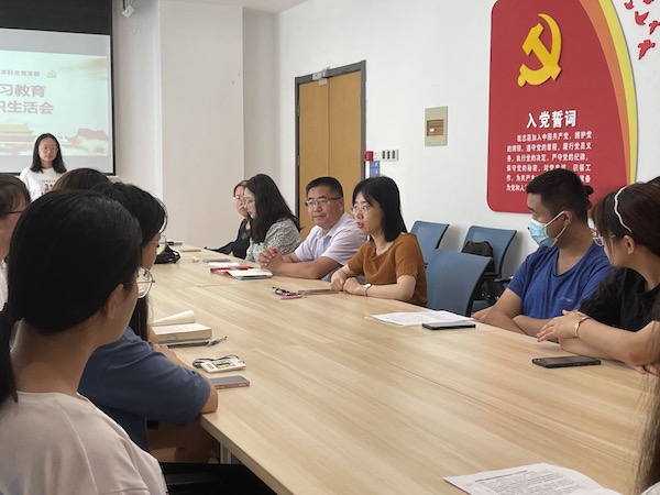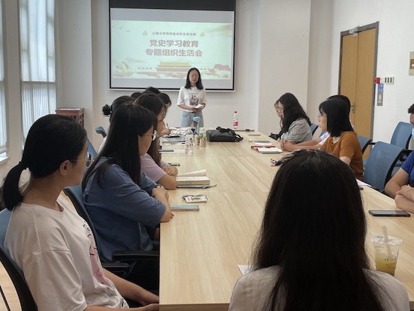 为深入学习贯彻习近平总书记在庆祝中国共产党成立100周年大会上的重要讲话精神,扎实开展好党史学习教育这项重要的政治任务。7月9日,药学院本科生党支部在图书馆513党员活动室召开党史学习教育专题组织生活会。学院党委委员葛玲出席会议,会议由本科生党支部组织委员邹倩主持。