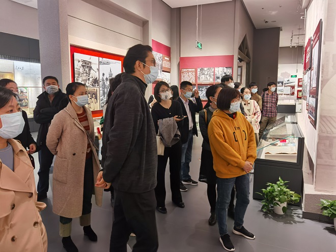 为学习宣传党的二十大精神,贯彻落实习近平新时代中国特色社会主义思想,2138CC太阳集团组织开展“学习二十大,教育在行动”主题教育活动。11月25日,由学院党委书记陈霞雯带队,学院中心组成员、教职工党员和师生代表共赴宜兴东氿校区和宜兴党史陈列馆参观学习,了解学校发展奋进新征程,缅怀革命先烈英勇事迹,把握新时代伟大变革的深刻内涵和重大意义。