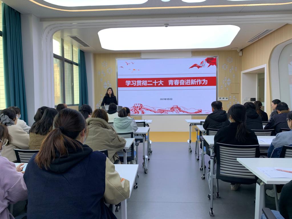 会上,学院党委副书记兼副院长蒋艳以《学习贯彻二十大 青春奋进新作为》为主题开展专题党课,她以习近平总书记在党的二十大报告中,提出的一系列新观点、新论断、新思想、新战略、新要求为党课的切入点,围绕党的二十大精神内在逻辑和蕴含的深刻内涵、习近平新时代中国特色社会主义思想的世界观和方法论等方面进行阐述,并重点围绕“实施科教兴国战略,强化现代化建设人才支撑”,结合大学生未来发展方向、人才培养、学风建设、学科竞赛、升学就业、作用发挥等情况进行了细致分析、提出了具体要求,勉励党员们要找准时代坐标,明确自身发展目标,不断提高本领和才干,争先创优,充分发挥模范带头作用。
