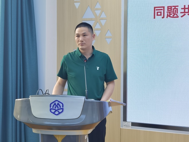 张海峰以《同题共研同题共答推进师德师风建设——主题教育背景下教师师德师风建设的实践与思考》为题展开学习辅导。首先,领学了学习贯彻习近平新时代中国特色社会主义思想主题教育工作会议精神,对主题教育目标要求、重大意义以及教育部党组和学校党委对主题教育的部署安排等方面进行了全面的梳理和讲解。本次主题教育的总要求是“学思想、强党性、重实践、建新功”。他强调指出:我们要深刻认识开展主题教育的重大政治意义、理论意义、实践意义,教育引导广大党员、干部切实把思想和行动统一到习近平总书记重要讲话精神和党中央决策部署上来,更加坚定拥护“两个确立”、坚决做到“两个维护”。紧紧锚定主题教育的总要求、根本任务、具体目标,把主题教育与学校自身实践相结合,在制定措施、推动落实过程中自觉对标对表、及时校准偏差,确保主题教育不变形、不走样。