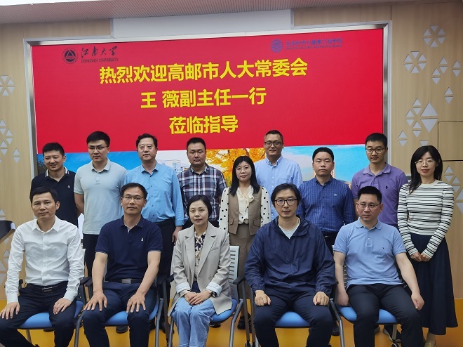 史志洪代表学院对高邮市人大常委会副主任王薇一行的莅临指导表示热烈欢迎,并简要介绍了学院的发展概况、师资力量、科学研究、社会服务等情况。