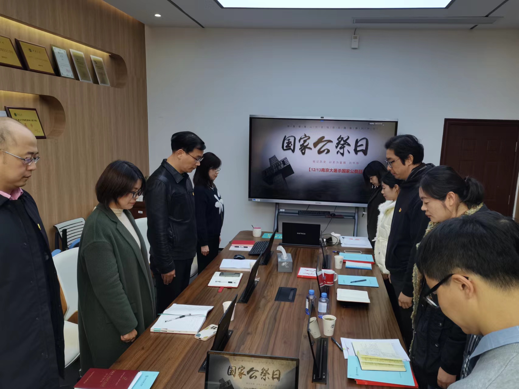 公祭日当天,在党委书记史志洪的带领下,党委委员在学院党委会上进行集体默哀,缅怀为中国人民抗日战争献出生命的革命先烈和民族英雄,并推送各支部党员观看南京大屠杀死难者国家公祭日悼念活动,跟央视新闻一起铭记历史,珍惜和平,为死难者默哀。