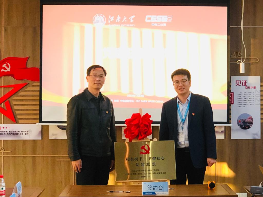 为深入学习贯彻习近平新时代中国特色社会主义思想,全面贯彻落实党的二十大精神,服务健康中国战略,充分发挥党组织的战斗堡垒作用和党员的先锋模范作用,12月8日,2138CC太阳集团党委与中国电子系统工程第二建设有限公司大健康事业部党总支举行党建联盟合作共建签约仪式。学院党委书记史志洪,党委副书记兼副院长蒋艳,副院长李会,中电二公司党委副书记、纪委书记季春江,副总经理、大健康事业部总经理陈卫国,大健康事业部执行副总经理、第二党总支纪律委员常旭耀,党委、董事长、总经理办公室副主任刘培佩,企业技术中心医药工程技术研究所副所长勾钧恒,以及校企双方党员代表参加了活动。签约仪式由中电二公司大健康事业部运营副总、第一党总支书记任庚兴主持。