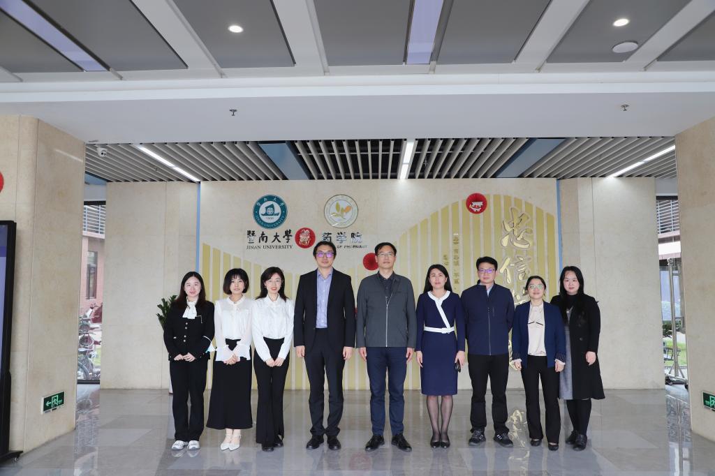 暨南大学药学院药学学科是国家教育部“双一流”建设学科。在与暨南大学药学院的交流中,张冬梅、张继涛、尹健、史志洪分别围绕组织架构、管理与服务、学科建设和科学研究等方面进行了介绍,随后双方就党建创新、学科建设、横纵向项目开展、行政管理等议题进行了深入交流,并参观药学院公共科研平台和中药标本馆,学习了暨南大学药学“双一流”学科建设成果和中医药文化。