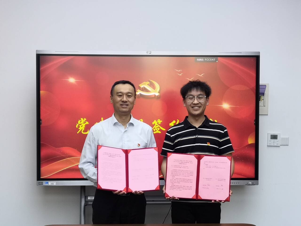接下来,李会、张世祺分别代表教师第一党支部、研究生第一党支部与中电诚达党支部签订党建联盟共建协议。双方代表就阵地联建、理论联学、活动联办、资源联享、人才联育、品牌联创等方面进行了深入地交流与讨论,共同表示将筑牢“红色堡垒”,创新发展,形成合力。