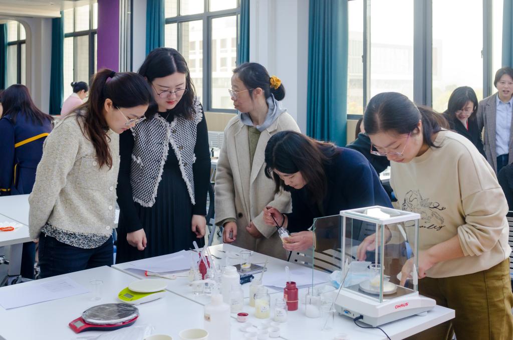 香水制作环节,在储鸿老师指导下,女教工们根据自己的喜好,细心挑选主香调,然后进行香基称量和香精勾兑,随后按比例进行配比,耐心调制。迷人的香气,精致的瓶身,活动过程中通过闻香、调香,大家也在不知不觉中把工作和生活带来的压力和疲惫卸下,悠然享受午间时光,领略香水的优雅魅力。