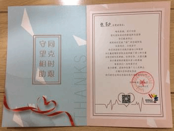 2月开始至中旬,朱劼老师在河埒社区帮助做企业复工登记、电话随访等工作,她耐心细致地服务得到了大家的肯定和赞许,河埒社区的领导还专门为朱老师发来了感谢信,并预约她参加下一次的全国人口普查工作。2月中旬至3月中旬,由于物业人手紧张,朱老师就在阳光嘉园物业帮助做电梯按键消杀工作,她的任务是每天将小区内总共28部电梯的按键用84消毒液进行消毒并贴上保护膜。电梯属于密闭空间,来往人员繁杂,但朱老师毫不畏惧,每天风雨无阻认真细致的完成任务。物业工作人员和许多业主对她主动、坚持、踏实的志愿行为都赞不绝口。