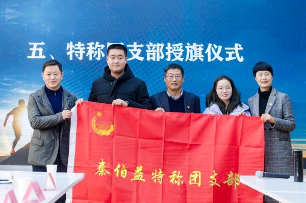 接下来,校团委书记孔祥年宣读了《关于同意药学院分团委成立“秦伯益”特称团支部的批复》。陈卫校长携同团委书记孔祥年和学工处副处长李荣华共同为药学1801班团支部授旗并合影留念,这也是我校自1996年创建以来,第一次由院士亲自授旗“特称团支部”。