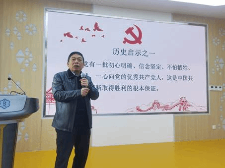 会议期间,学院邀请到马克思主义学院院长刘焕明教授为党员上了一堂题为《从胜利走向胜利的中国共产党》的党课。他带领全体党员回顾了中国共产党的发展历程,围绕四大历史启示,鼓励全体党员应甘于奉献、坚持为民、勇于纠错、严守纪律,为中国共产党的事业取得胜利而不懈奋斗。并将自己的著作《近代中国的民主之路与历史经验》签名授予学生党支部书记,勉励同学们不忘初心,一心向党,愈挫愈奋。