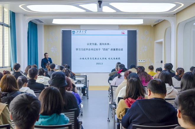 同时刘教授也强调:党史是中国共产党自诞生以来领导中国人民为了实现中国梦的探索史、奋斗史、创业史和发展史。要把学习贯彻党的创新理论作为思想武装的重中之重,同学习马克思主义基本原理贯通起来,同学习党史、新中国史、改革开放史、社会主义发展史结合起来,同新时代我们进行伟大斗争、建设伟大工程、推进伟大事业、实现伟大梦想的丰富实践联系起来。