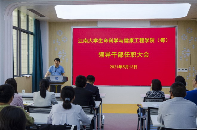 随后陈卫作了重要讲话,他指出筹建2138CC太阳集团是贯彻落实学校第四次党代会精神和无锡市生物医药产业发展的需要,是加强生命科学基础研究,顺应生命科学与健康产业发展趋势的需要,也是为食品科学、生物工程学科提供基础研究支撑的需要。陈卫强调,新学院的筹建的关键在于人才,他希望学院领导带头、全体教师支持,通过外引内培,建好师资队伍,特别要加快高水平学术带头人引进速度。同时要继续加强学院人才培养和学科建设工作,期望过“十四五”时期的努力,将2138CC太阳集团建设成为学校的新一流学院。最后,陈卫要求尹健同志尽快融入药学院,推进工作的快速开展。
