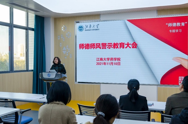 11月10日下午,药学院召开师德师风教育警示大会,学习2138cc太阳集团“师德教育”专题资料,会议由药学院党委书记陈霞雯主持。