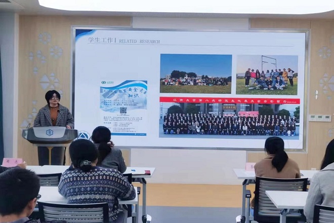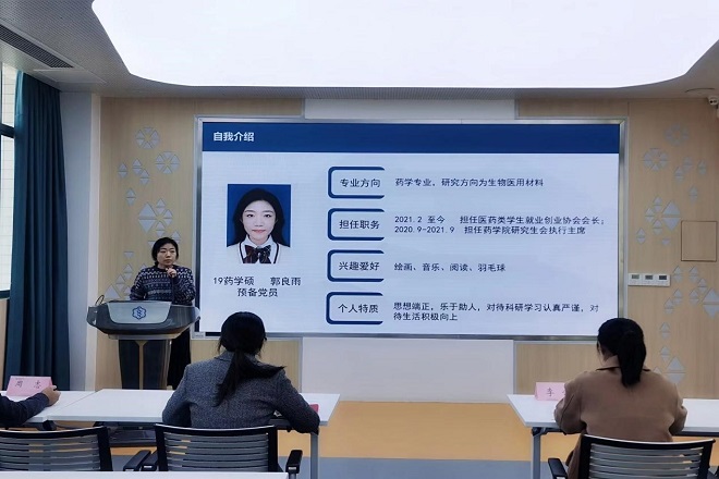 为充分展示药学院优秀研究生的青春风采和累累硕果,深入挖掘、树立和宣传研究生中的先进典型,更好地激励和引导全体研究生志存高远、脚踏实地,学院于2021年11月12日在306会议室举办2020-2021学年优秀研究生标兵答辩。副院长吴静教授、副院长李会教授、党委副书记兼副院长蒋艳老师和周志教授担任评委,60余名研究生现场观摩。本次答辩会由分团委书记王珏老师主持。