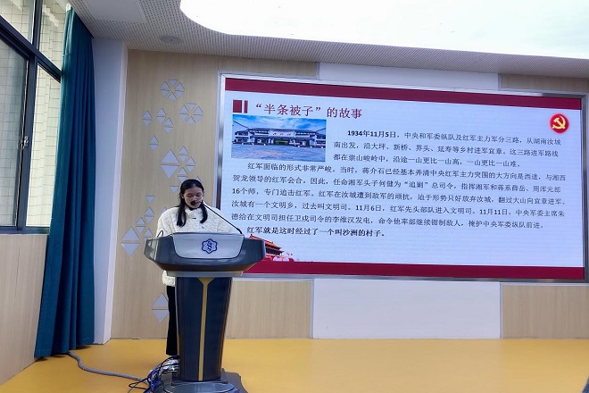 会上,党员代表纷纷发表自己的感言和体悟,其中学生党员熊文典听后深有感触,她表示,“87年前这个发生在湖南汝城县的‘半条被子’的感人故事,留下了共产党和红军的深情,也留下了人民对共产党的认识和想念。我从故事里的那份初心,感悟到革命事业的崇高和神圣,更切身体会到一个无产阶级政党一心为民的真挚情怀、与人民水乳交融的深厚情谊。作为一名研究生党员,要加强党性修养和党员意识,强化责任担当和服务意识,牢记为人民服务的初心和使命,坚定信仰,将‘四个意识’‘四个自信’落实到工作中去。”