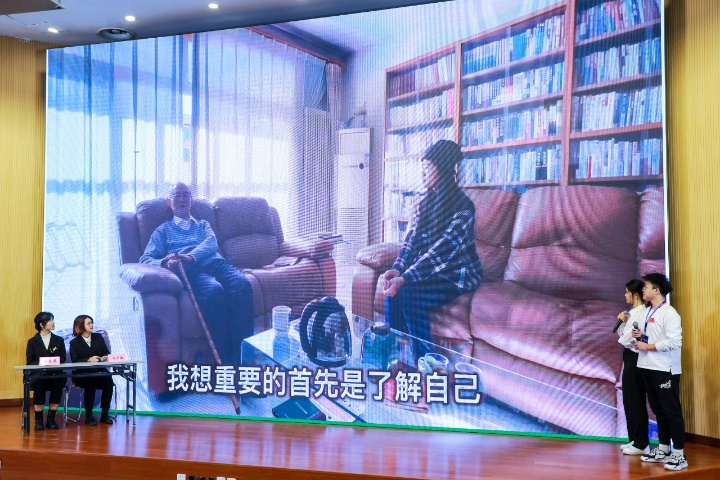 本次答辩分为视频展示和现场展示2个环节,视频展示环节药学1801班以10周年同学聚会上回忆大学班级风采的独特展示形式,在短短2分钟时间里将班级的成就娓娓道来,获得了在场评委的一致认可。随后,药学1801班王鹏威、冯于敏、任芷慧等7位同学代表班级登台展示,以“‘江小药’二代特效药发布会现场”为展示场景,针对“记者”的提问,二位“发言人”将药学1801班的科创竞赛比作“药物活性”、将团日活动比作“药物动力”、将社会实践比作“靶向作用”,阐述了药学1801班在思想建设及社会实践方面的亮点特色,秦伯益院士对班级同学的寄语也把答辩气氛推向了高潮,至此,“发布会”落下帷幕。