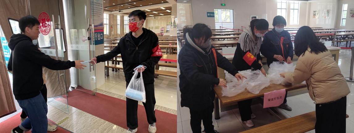 生科院学生志愿者也充分发挥了战斗堡垒作用,主动自觉承担社会责任,纷纷加入学校、社区抗击疫情的志愿服务工作中,以实际行动践行着初心使命。药学2101班学生刘政、药学2102班学生陈方蕾在学校食堂担任志愿者,为忘记戴口罩的同学分发口罩、帮助打包餐盒、为限动的同学送饭,“同学们,不要急,进食堂前先佩戴好口罩!”他们穿梭在食堂和寝室楼之间,为同学们提供力所能及的帮助。药学2101班学生肖天心、药学2102班学生杨乾在核酸采样出口处协助信息登记、人员刷卡,大雨使志愿者们的工作难度很大,生科学子们深刻地体会到了防疫工作的辛苦,也由衷感激那些默默付出的防疫人员,希望疫情早些过去,每个人都能恢复正常生活。