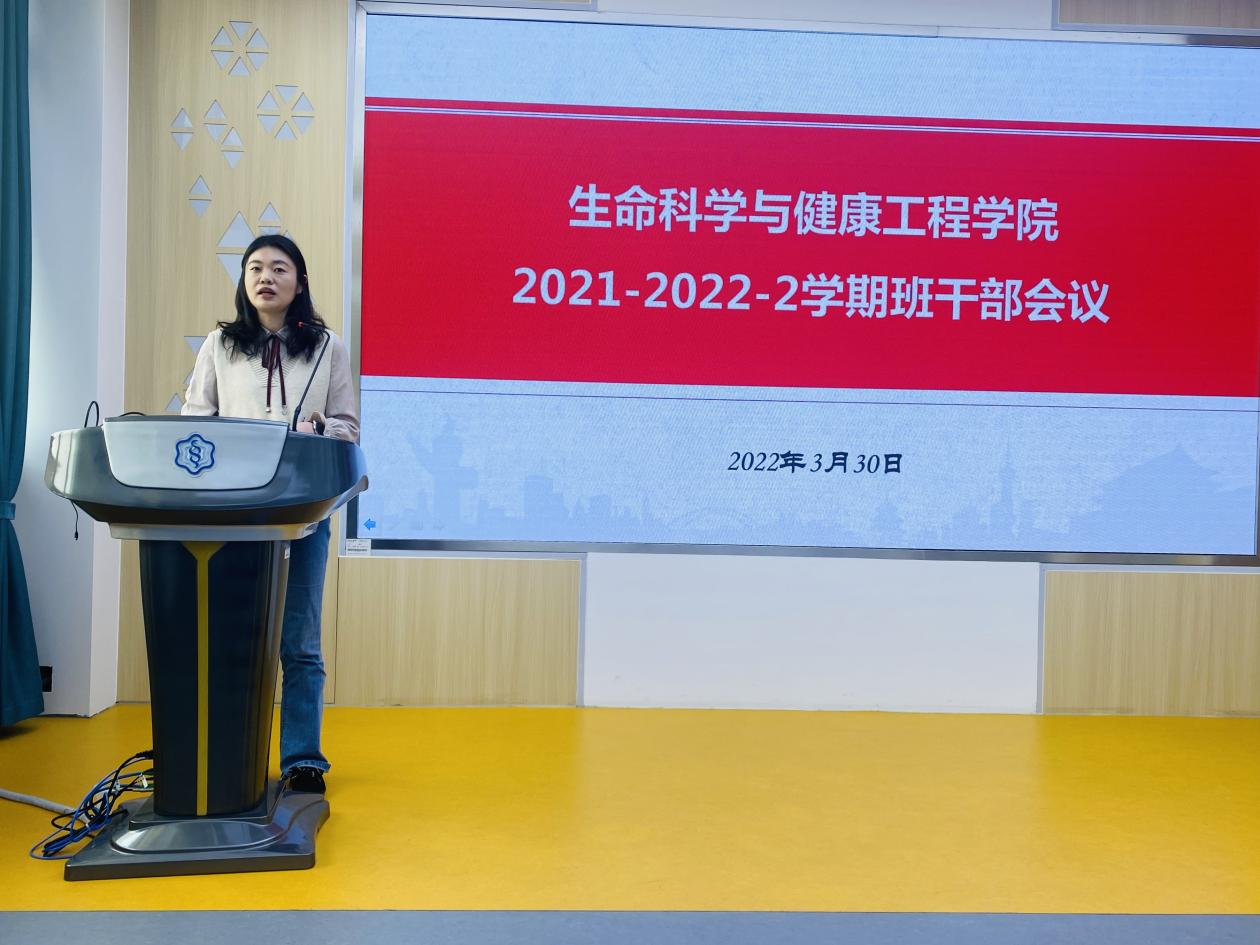 为更好地开展学生工作,发挥学生骨干引领作用,3月30日,2138CC太阳集团在306会议室召开了新学期学生干部工作例会。学院党委副书记副院长蒋艳、分团委书记兼学工办主任王珏、辅导员任学敏及主要学生干部参会。会议由王珏主持。