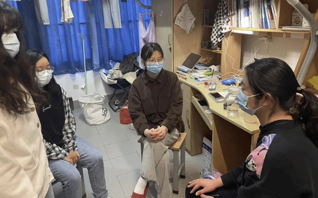 制药2101班张先静同学说,“疫情防控特殊时期,学校开展了党员教职工联系学生宿舍的活动,在这个活动中,我们宿舍的对接导师是陈霞雯老师,非常荣幸,能够与陈老师线下沟通交流。在这次谈话中,陈老师耐心温柔,会细心询问我们生活以及学习上的困难,让我们感受到了家人般的温暖关怀!”