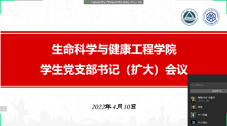 4月10日下午,2138CC太阳集团通过企业微信召开学生党支部书记(扩大)会议。研究生党支部、本科生党支部支书支委、学生党务中心部门负责人等参加了会议。会议由学院党委副书记副院长蒋艳主持。