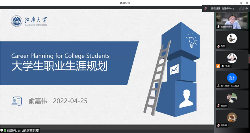无锡市生物医药行业团工委书记俞嘉伟主讲“大学生职业生涯规划”