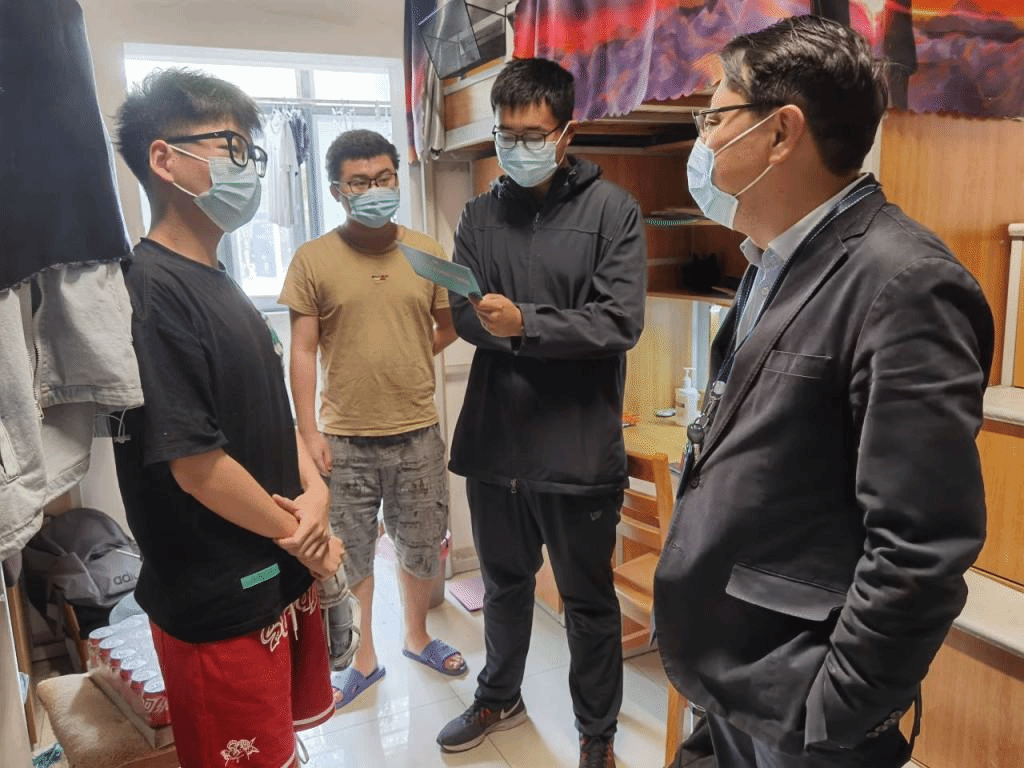 走访过程中,学院领导与学生亲切交流,感谢同学们对学校疫情防控工作的支持与坚守,详细询问学生在校学习生活情况,认真听取学生的意见和建议,全面了解学生思想动态与关心热点。在大四宿舍,老师们与同学倾心交谈,关心询问毕业生的就业进展、考研深造、毕设进度等情况,祝福即将踏出校园的同学们前程似锦;在大三宿舍,老师们寄语同学们要做好职业规划,正确评估自己,奋力扬帆争先,勇立时代潮头,最优程度地实现自我价值;在大二宿舍,老师们强调同学们要精进学业,提高网课学习的效果,加强自我管理和约束,打好专业基础,拓展能力;在大一宿舍,老师们希望同学们多开展体育锻炼,保持阳光心态,积极参加学院为同学们精心准备的各项活动,放松同时也要不忘学习,过一个充实快乐的“五一”。在实验室,老师们关切地询问学生们的耗材情况和科研进展,提出在疫情期间做研究更应该沉得下心,并叮嘱学生们要合理规划时间,劳逸结合。