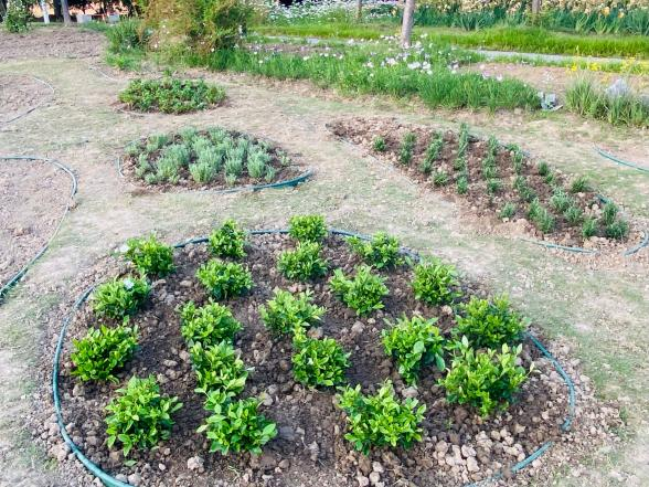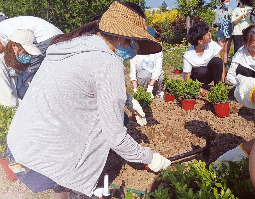 在活动中,同学们在吴湘娟老师的细心指导下,严格按照药草种植的要求,把控好种植间距以及种植的深度,小心地将药草幼苗放入土坑中,覆上泥土,并用小水壶耐心地将幼苗根部的土壤润湿。五月的阳光是澄明的,洋洋洒洒的落在同学们的身上,但是同学们的热情并没有因为生理上的疲惫和天气炎热而减弱,相反的同学们全身心得投入种植活动之中,放松心情,充分地享受种植的乐趣。