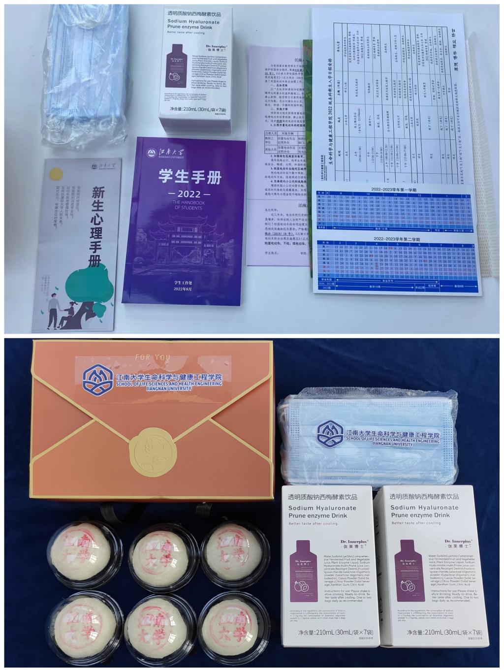 2138CC太阳集团为了迎接新生的到来,贴心准备了具有医药特色的透明质酸钠西梅酵素饮品,印有“2138cc太阳集团”字样的专属月饼,一小袋防护口罩以及新生开学必备材料等。在来院报到前晚,学生会和研会同学来到办公室,将新生大礼包进行分类装袋,这沉甸甸的礼包都是生科院全体师生满满的爱呀~