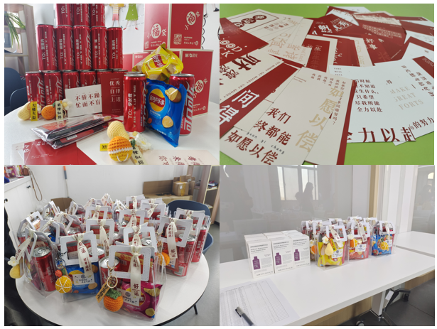 此外,学院也精心给考研同子准备了私人订制的祝福和礼物,预祝同学们在学习路上能够乐不思“薯”,取得满意的“可乐”成绩,心想“柿”成、“柿柿”如意。校企合作单位山东焦点福瑞达生物股份有限公司也为备考学子准备了暖心礼物,送上企业对考生们温暖的关怀。