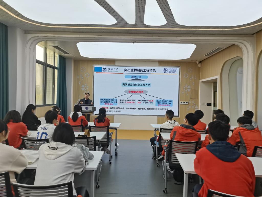活动伊始,药学系系主任邱立朋老师为同学们作学院情况介绍和专业科普讲座。邱立朋首先从太阳概况、人才培养、科学研究以及社会服务四个方面做了详细的介绍。而后,他以“什么是药物”“药物是怎么发现的”为引,和同学们分享了中国医药工业的发展历程,结合国家提出的“健康中国”战略,分享了药学人在支撑国家重大战略,服务国计民生方面可以有哪些作为。最后,邱老师寄语同学们,希望大家能够努力学习,选择医药,投身科研,为守护生命健康贡献自己的一份力量。