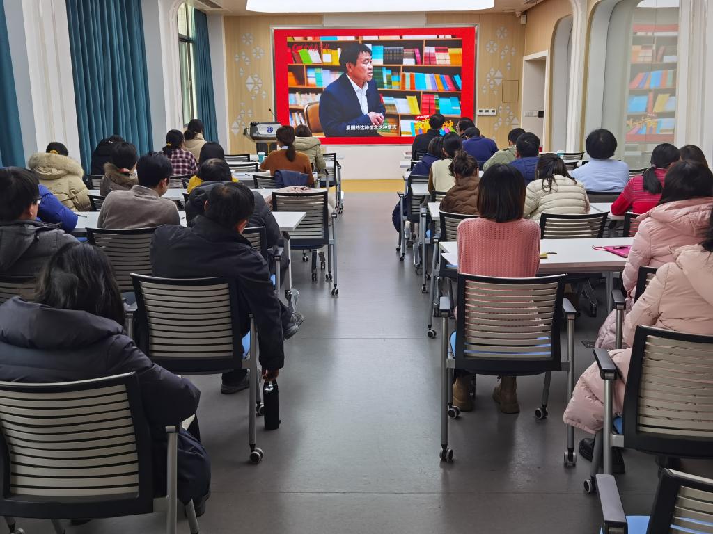 随后,全体教职工进行政治理论学习,共同观看了“我心中的教育家精神——张玉滚”微视频。张玉滚是全国优秀教师、全国师德标兵、全国岗位学雷锋标兵。他告诉我们:教师应该将教育家精神作为榜样引领勉励自己。张玉滚是干事创业的活教材,见贤思齐的好榜样,我们要学习他不忘初心、潜心教学、艰苦奋斗的精神,坚守理想信念、坚持立德树人,以过硬的作风和一流的业绩助推学生成长成才。
