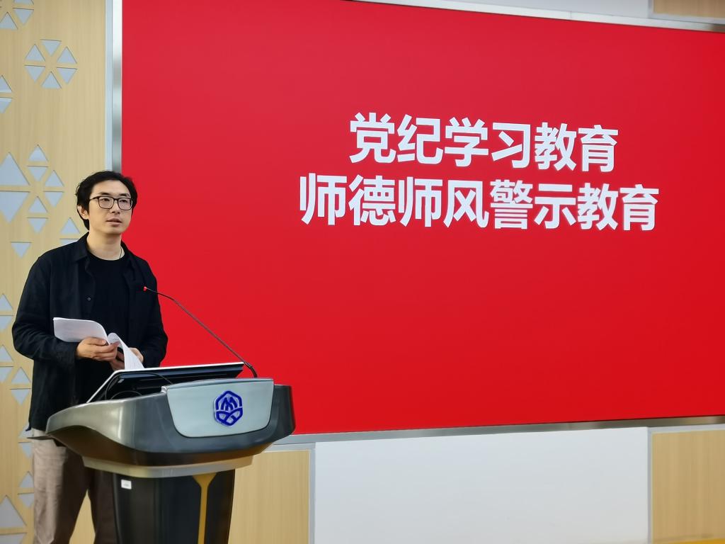 会议伊始,院长尹健带领全体教职工进行党纪学习教育师德师风专题警示教育。他通报了学校近期编印的违反师德师风典型案例,要求全体教师要深入学习习近平总书记关于师德师风的重要论述,深刻领会师德师风的重大意义,以案为鉴,深刻认识违纪违规的严重后果,筑牢思想防线,知敬畏、存戒惧、守底线,不断增强立德树人、教书育人的责任感和使命感。