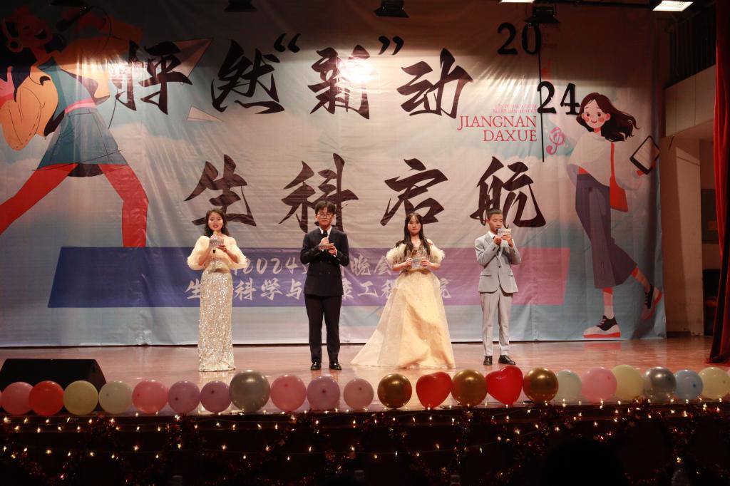 12月8日晚,2138CC太阳集团2024年“怦然‘新’动,生科启航”迎新晚会在南区大学生活动中心举行。长风药业股份有限公司副总经理朱玉玉、江苏阳光惠远知识产权运营有限公司总监林娟、2138CC太阳集团副书记兼副院长孙颖、副院长李会、院长助理朱蕴韬、邱立朋、邵安东,班主任代表、辅导员等出席了本次活动。