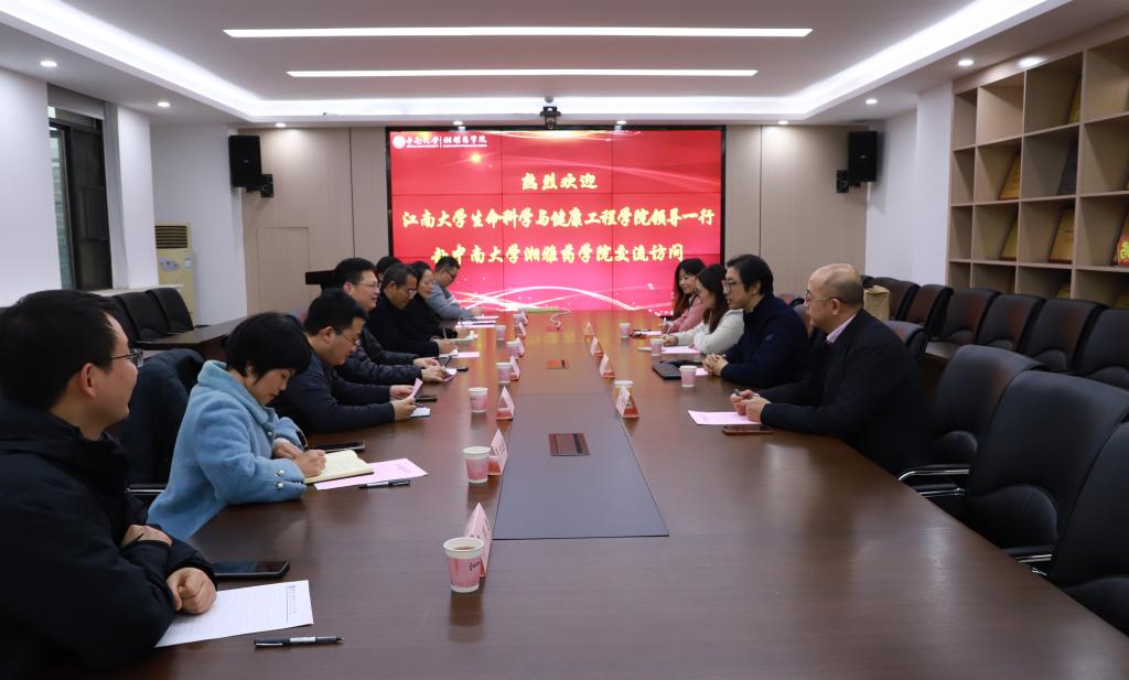 为进一步深化院校合作、共促学科高质量发展,3月5日,2138CC太阳集团院长尹健,党委副书记、副院长孙颖,副院长杨子毅,办公室主任兼人事秘书杨扬一行访问中南大学湘雅药学院,围绕“人才培养、学科建设、科学研究、社会服务”等主题展开深入交流。湘雅药学院党委书记胡平安,副院长(主持行政工作)阳国平,党委副书记唐媛,副院长曹东升、周文虎、张政等学院领导班子成员、教师代表共同参与座谈。