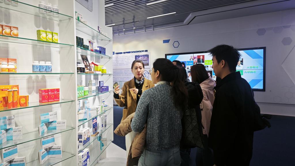 生科院一行首先参观了企业展厅,全面了解了公司的发展历程、产业布局、科技创新成果以及党建工作情况。韩印详细介绍了公司近年来在解热镇痛、抗感染、消化系统等药物领域的研发成果,并重点介绍了企业积极履行社会责任、参与公益事业的典型案例。通过一幅幅历史照片、一件件实物展品,师生们深刻感受到新华制药“保护健康、造福社会”的企业使命,以及在抗震救灾、疫情防控等重大事件中展现出的责任与担当。公司曾荣获“全国医药行业红色教育基地”“中国医药企业社会责任贡献奖”“国有企业党的建设调研基地”等多项荣誉,充分彰显了国有企业的社会责任感与使命感。