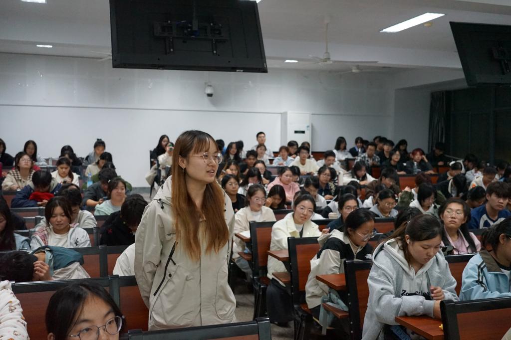 在问答环节,在场学生积极发言。一名研二学生就“药明合联招聘核心标准与大学生如何提高核心竞争力”进行提问。徐洁指出,企业尤为看重三点:成长型思维、团队协作力以及韧性。她建议学生保持好奇心,以“工匠精神”深耕热爱领域,并持续投资自我——“时间花在哪里,收获就在哪里”。