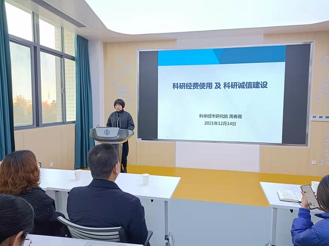 周春霞做“科研经费使用和科研诚信建设”专题培训