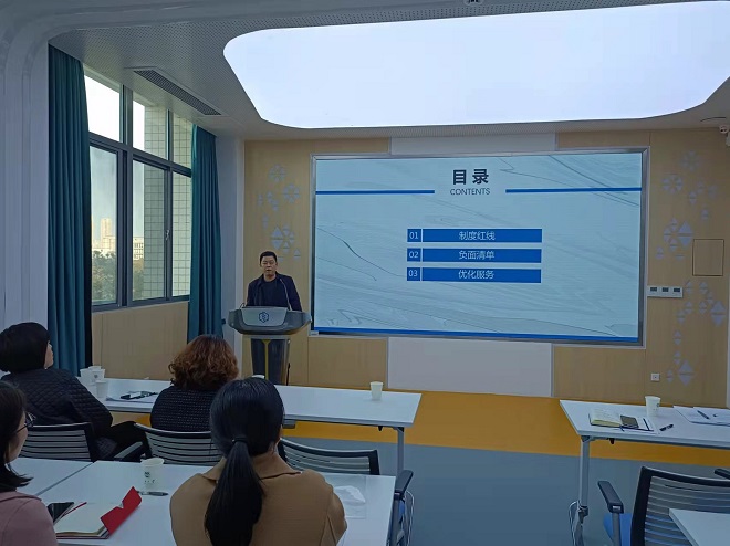 财务处副处长李鹏以“简约过程控制+严肃违规处理”为题做科研经费规范使用专题培训。李鹏分别从制度红线、负面清单和优化服务三个方面进行了科研项目“放管服”背景下的制度红线解读、不同业务类型的负面清单以及财务处为提高服务效能所做的流程简化、优化服务。
