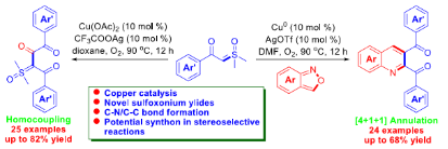 图1. 铜催化2,3-二酰基喹啉和三羰基氧化硫叶立德的合成