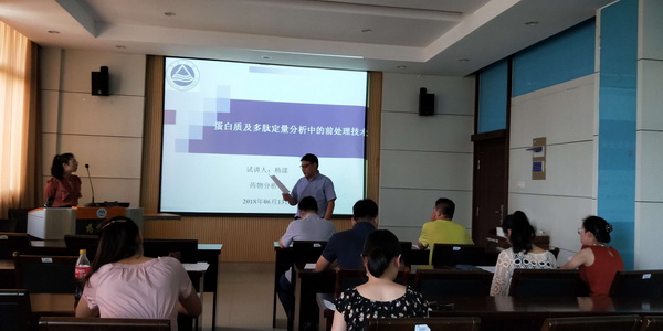 2018年6月13日上午,中国药科大学杨漾博士来药学院做了一场题为“蛋白质及多肽定量分析中的前处理技术”的报告,报告由院长陈敬华教授主持,副院长史劲松教授等老师出席报告现场。