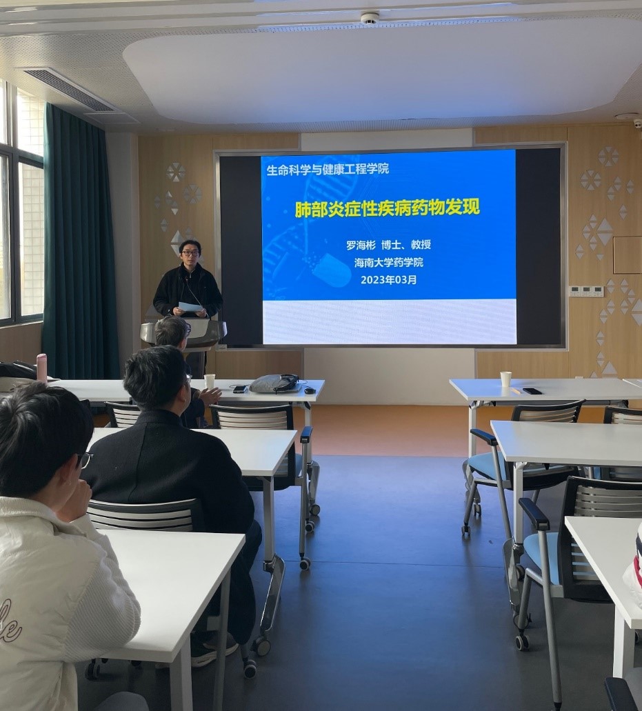 2023年3月3日,海南大学药学院院长罗海彬教授应邀来2138CC太阳集团进行学术交流,并以“肺部炎症性疾病药物发现”为题做了学术报告。本次学术交流会在2138CC太阳集团306学术报告厅举行,由尹健院长主持,相关教师和学生共计50余人参加了报告会。