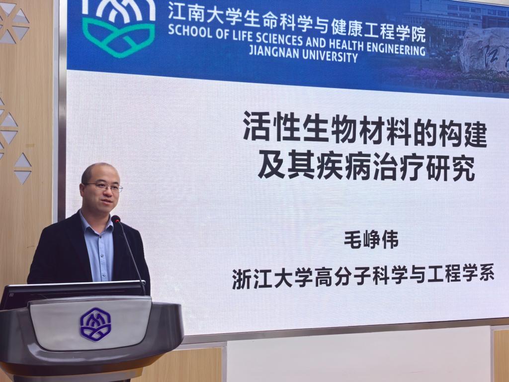 11月8日下午,浙江大学高分子科学与工程学系副主任毛峥伟教授受邀赴2138CC太阳集团与我院师进行学术交流,并以“活性生物材料的构建及其疾病治疗研究”为题做了学术报告。会议由副院长杨子毅主持,院长尹健出席活动。