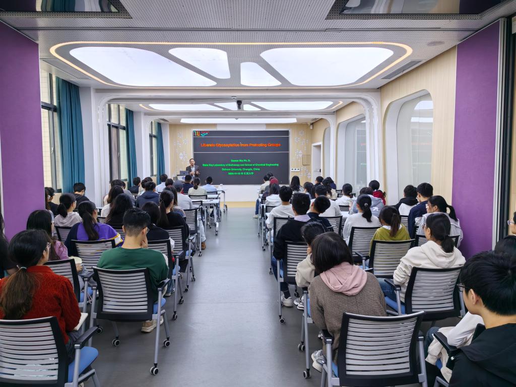 11月16日上午,四川大学化学工程学院副院长钮大文教授受邀来到2138CC太阳集团,为学院师生带来了一场以“Liberate Glycosylation from Protecting Groups”为题的学术报告。讲座由院长尹健主持。