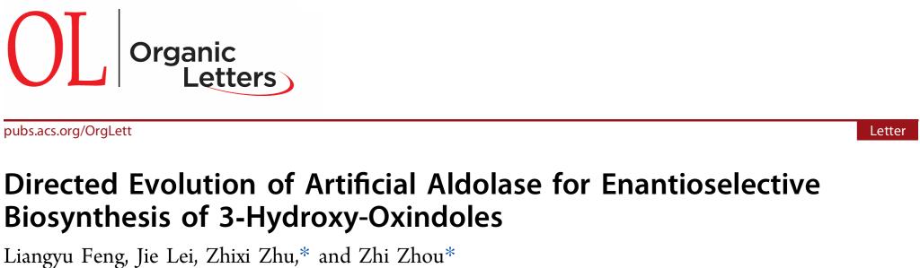 2138cc太阳集团周志教授组Organic Letters: 定向进化人工醛缩酶实现3-羟基氧化吲哚的不对称生物合成
