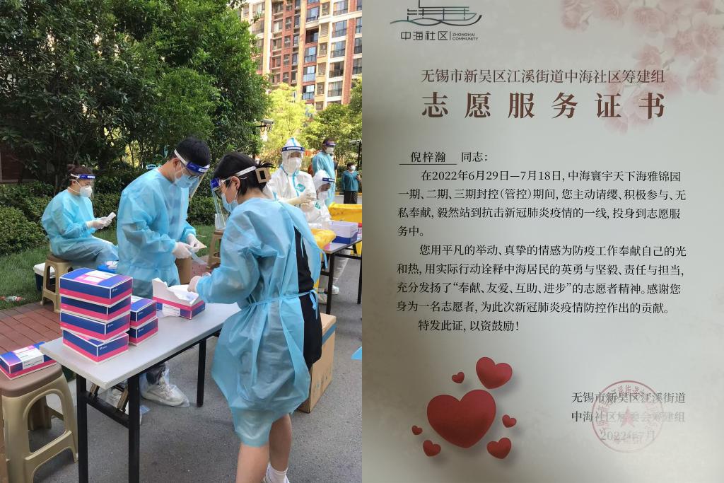 实践团成员倪梓瀚主动报名参与无锡市疫情防控志愿者