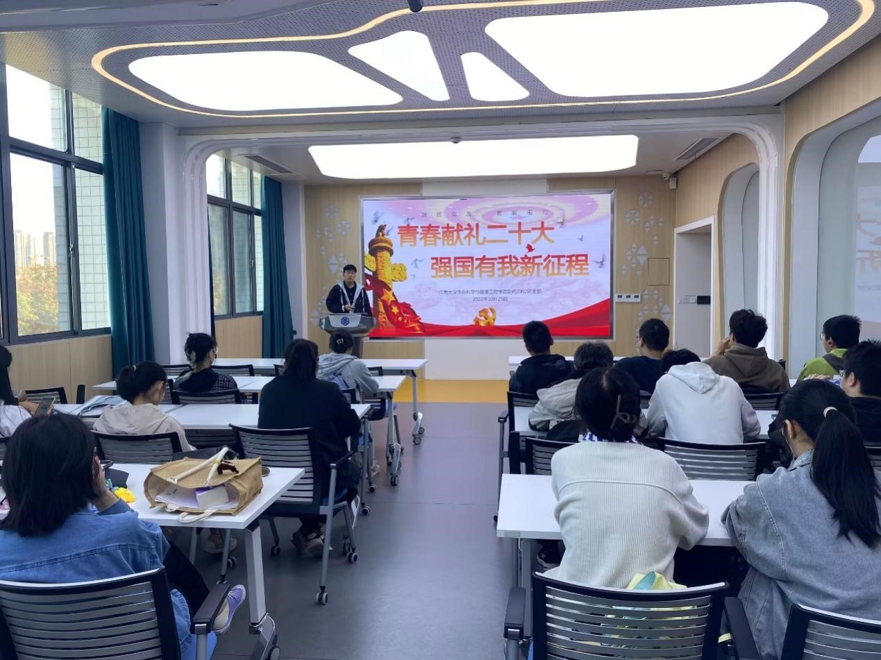 制药2101团支部于10月20日晚上19:00-19:30开展以“青春献礼二十大,奋进逐梦正当时”为主题的团日活动。活动伊始,团支部一起观看了二十大开幕会。李金铭同学在观看二十大开幕会后颇有感触,她说道:“作为一名新时代青年,需以志为先。蓝图昭示未来,信念引领方向。”随后进行“我和‘红色’合个影”以及“燃情阅跑向未来”两个活动,同学们以宿舍为单位展开。有的宿舍在外参观红色基地,在“肩负民族复兴希望的无锡人”的石碑前与伟人合影;有的宿舍一起在书香文墨中收获精神的富足,在奔跑中提高身体素质,奋发民族力量;有的宿舍与国旗党旗来了张合影。最后我们一起选出了最佳寝室,并把小礼物颁发给她们。